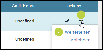 Klicken Sie dazu auf das 3-Punkte Menü des Auftrages und wählen Weiterleiten aus: