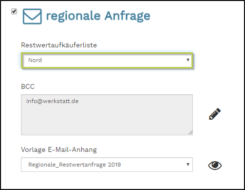 Setzen das Häkchen bei Restwertaufkäufer und erfassen die gewünschte E-Mail Adresse: