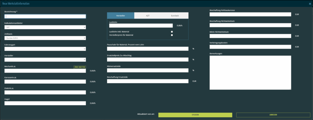 Werkstattinformation (WICHTIG, die „Bezeichnung“ ist eine Pflichteingabe)