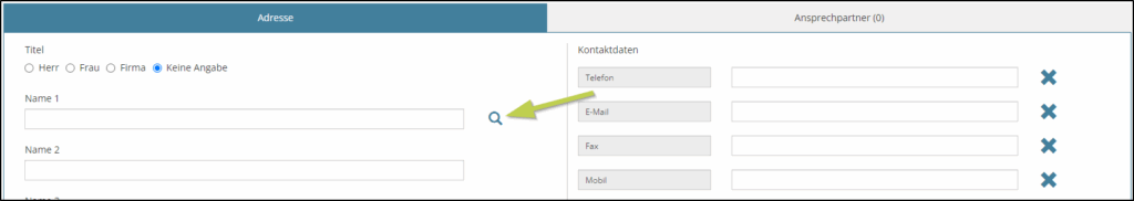 In einem Auftrag bei den „Vorgangsadressen“ haben Sie nun die Möglichkeit Ihre gespeicherten Adressen über die Lupe abzurufen.