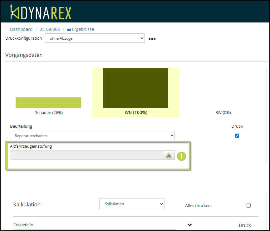 Auf der Seite Ergebnisse finden Sie neu das Feld Altfahrzeugeinstufung.