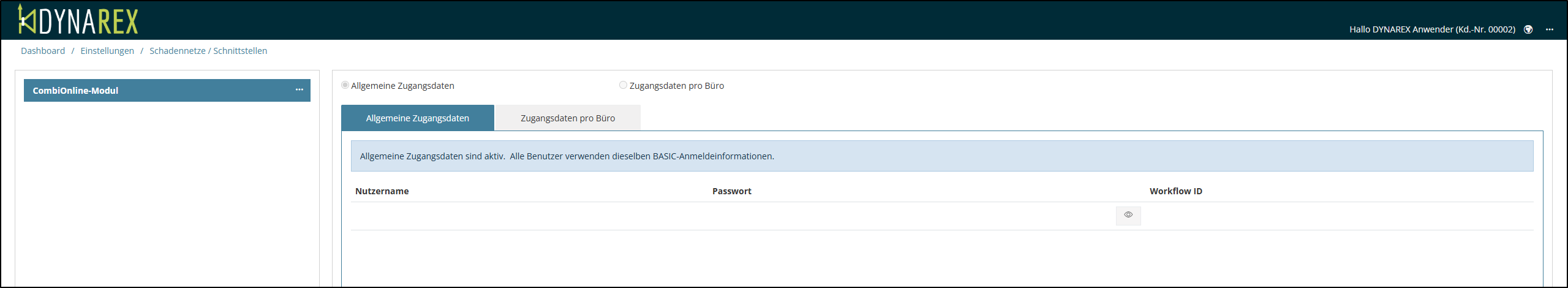 In gewohnter Art und Weise können Sie die Zugangsdaten Allgemein oder pro Büro erfassen. Details dazu finden Sie HIER.