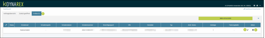 Die Aufträge kommen direkt in der DYNAREX-Inbox an und sind bereits mit den Angaben der Versicherung vorausgefüllt.