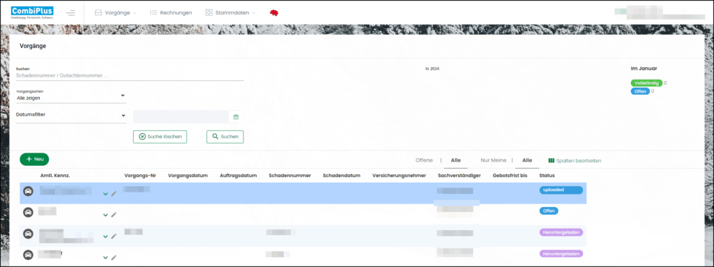 Der angenommene Auftrag ist in der Auftragsübersicht ganz oben platziert. Öffnen Sie diesen und erstellen Sie wie gewohnt Ihr Gutachten.