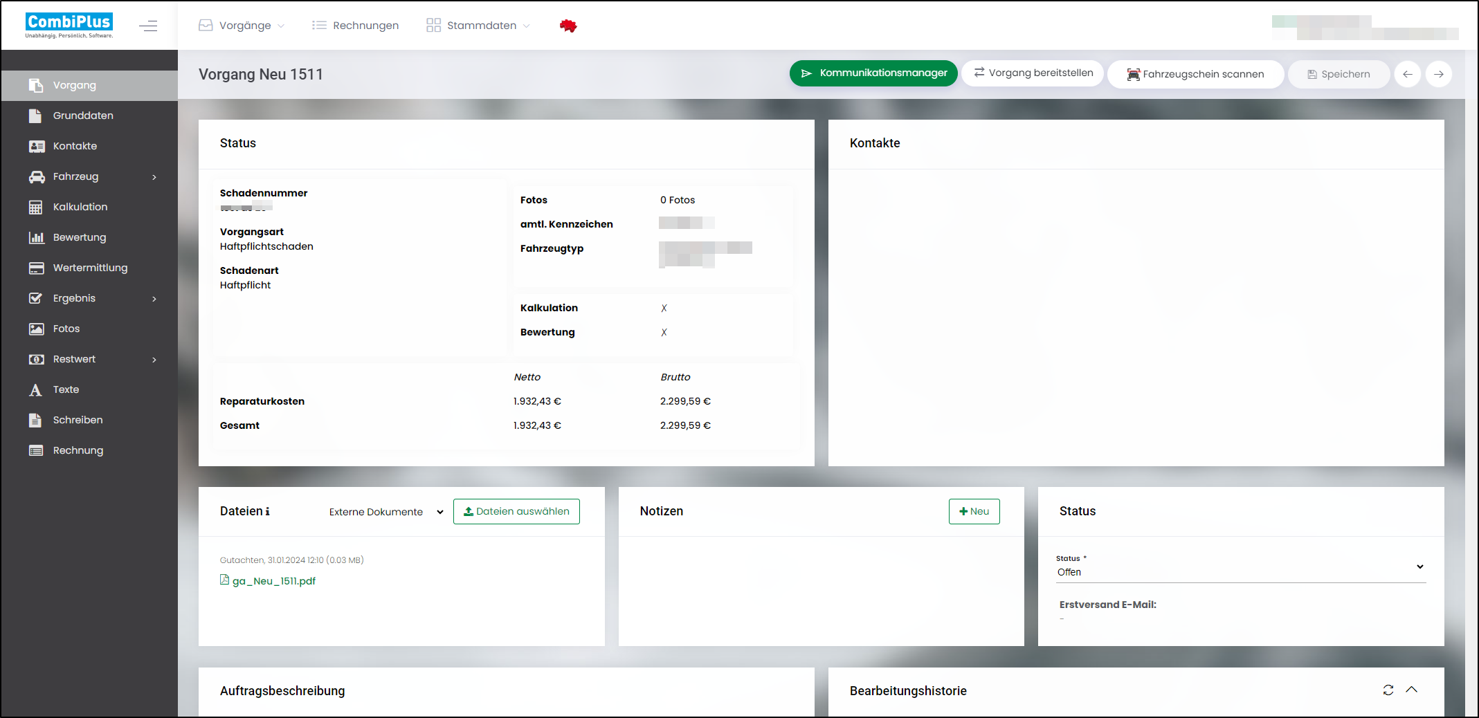 Der angenommene Auftrag ist in der Auftragsübersicht ganz oben platziert. Öffnen Sie diesen und erstellen Sie wie gewohnt Ihr Gutachten.