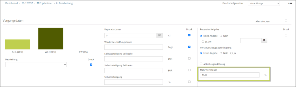 Unser Partner DAT wird ebenfalls automatisch die Mwst. auf 19% anpassen. Manuelle auftragsspezifische Anpassungen sind wie folgt möglich.