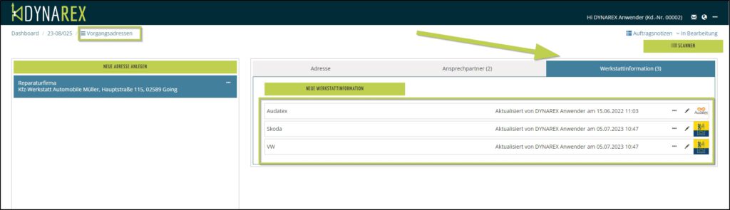Die Reparaturfirma wählen Sie wie bisher in der Kachel Vorgangsadressen aus.