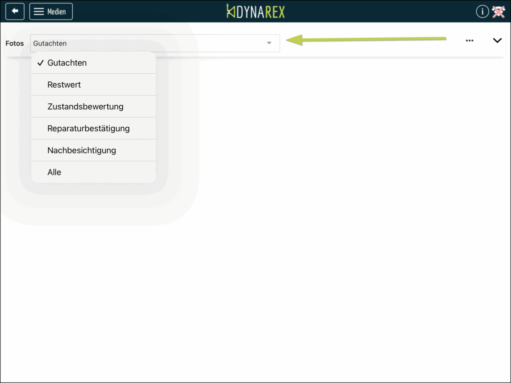 Über das Dropdown-Menü können Sie auswählen, in welchem Teil des Auftrages die Fotos hinzugefügt werden sollen
