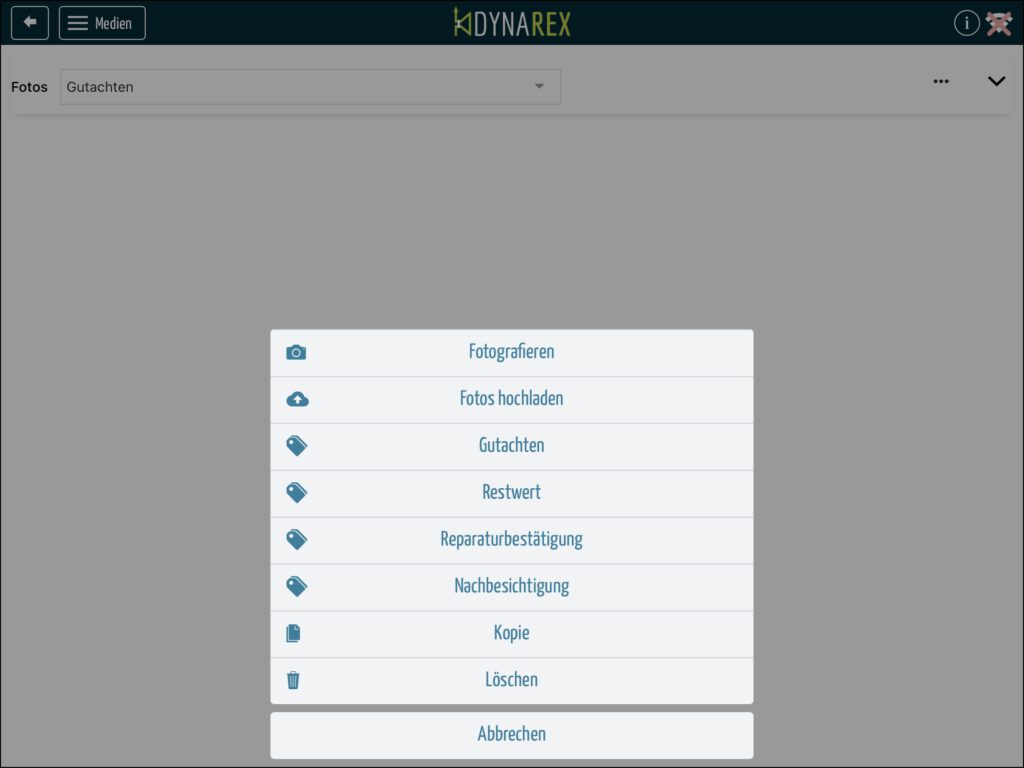 Neben der Schadenerfassung kann man auch Fotos zu dem Auftrag hinzufügen.