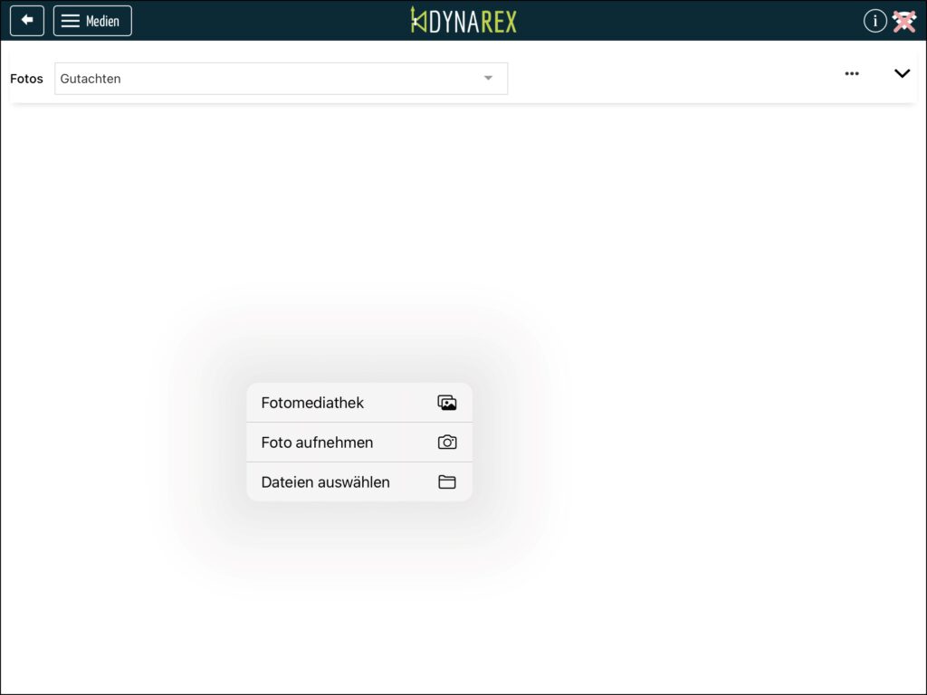 fügen Sie über das 3-Punkte Menü > Fotografieren > Foto aufnehmen die benötigten Bilder mittels Tablet-Kamera hinzu.