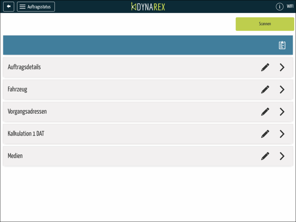 Beim Download des Auftrages werden neben den Auftragsdaten von DYNAREX auch die grafischen Fahrzeugdaten der DAT zur Erfassung des Schadens heruntergeladen.