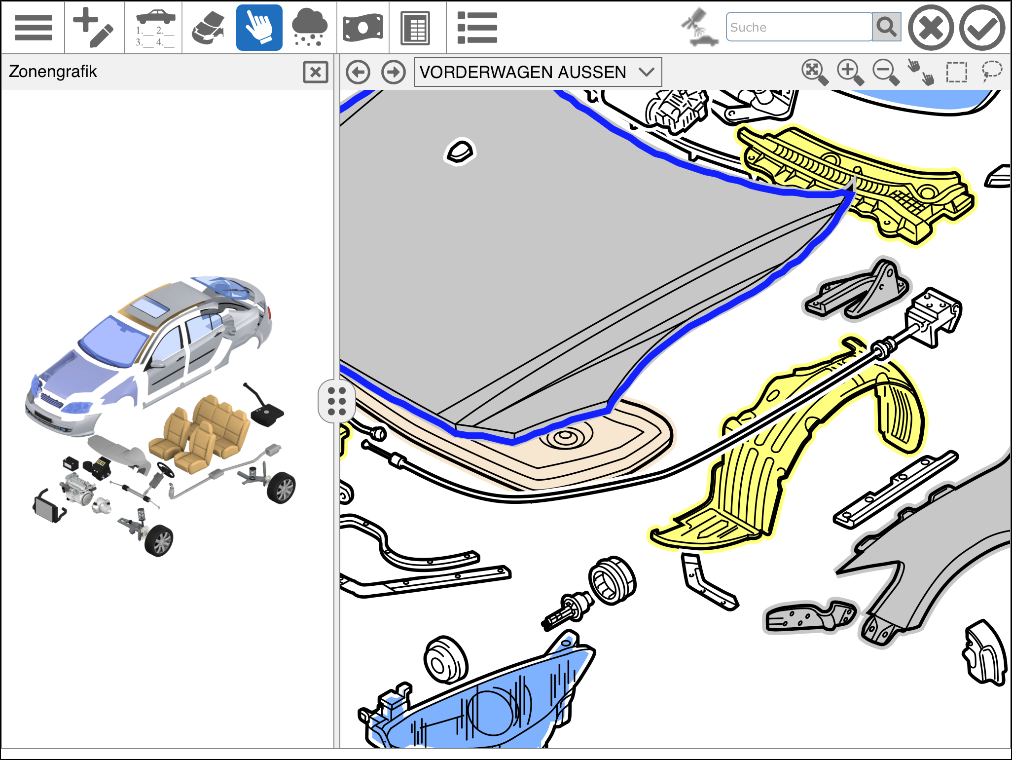 Beim Download des Auftrages werden neben den Auftragsdaten von DYNAREX auch die grafischen Fahrzeugdaten der DAT zur Erfassung des Schadens heruntergeladen.