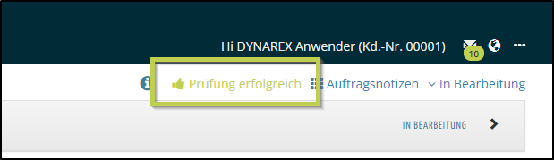 In der Auftragsbearbeitung wird der Status im rechten oberen Rand angezeigt.
