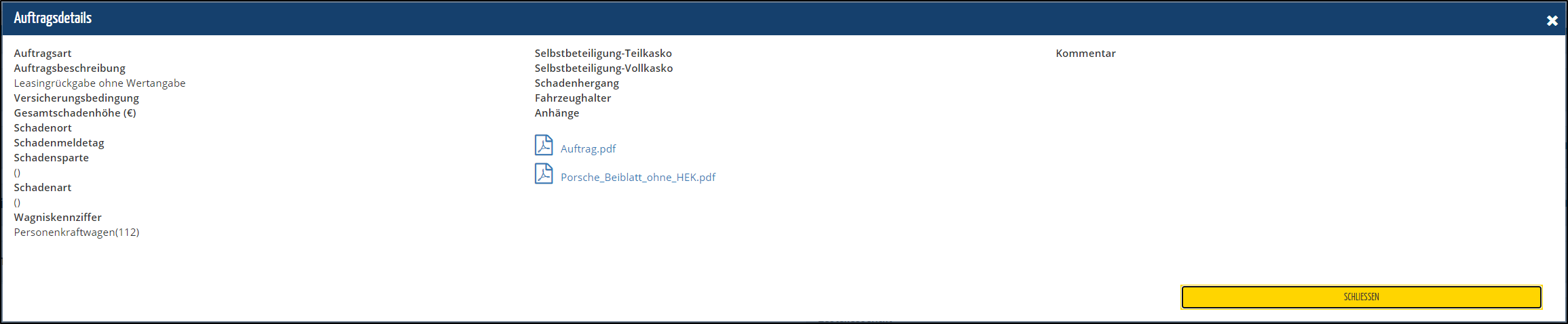 Klicken Sie auf den Info-Button (3) mit der linken Maustaste an , um weitere Informationen und zugehörige Dokumente eines Auftrages einsehen zu können.