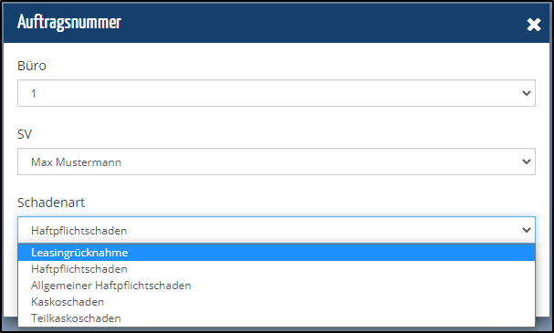 Klicken Sie auf den importierten Auftrag, um diesen zu öffnen. Füllen Sie den Dialog Auftragsnummer entsprechend Ihren Einstellungen mit Daten und bestätigen mit WEITER: