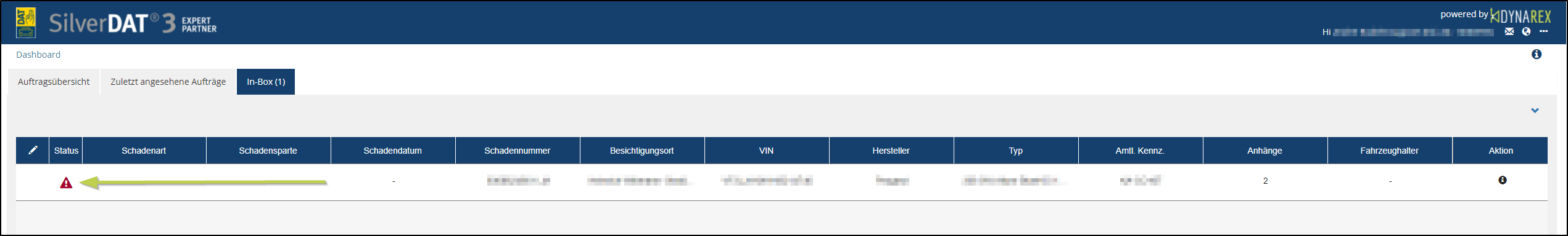 Klicken Sie bei dem gewünschten Auftrag in der Spalte Aktion auf das Häkchen, damit importieren Sie den Auftrag in SilverDAT 3 Expert Partner: