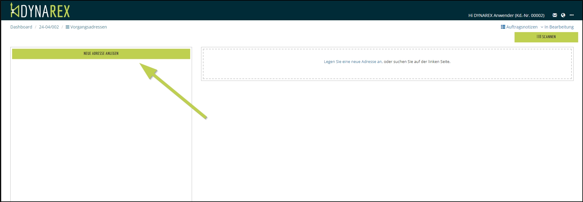 Öffnen Sie jetzt einen Auftrag und gehen in die „Vorgangsadressen“ und klicken auf „Neue Adresse anlegen“