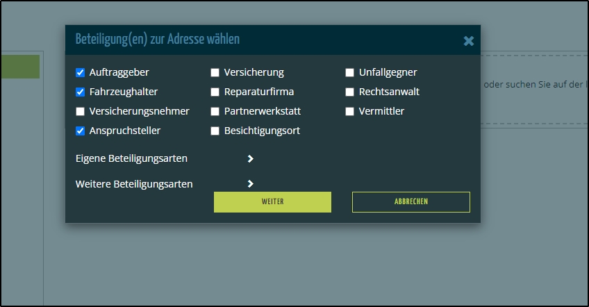 Im folgenden Dialog wählen die die Beteiligungsart aus und klicken auf „weiter“