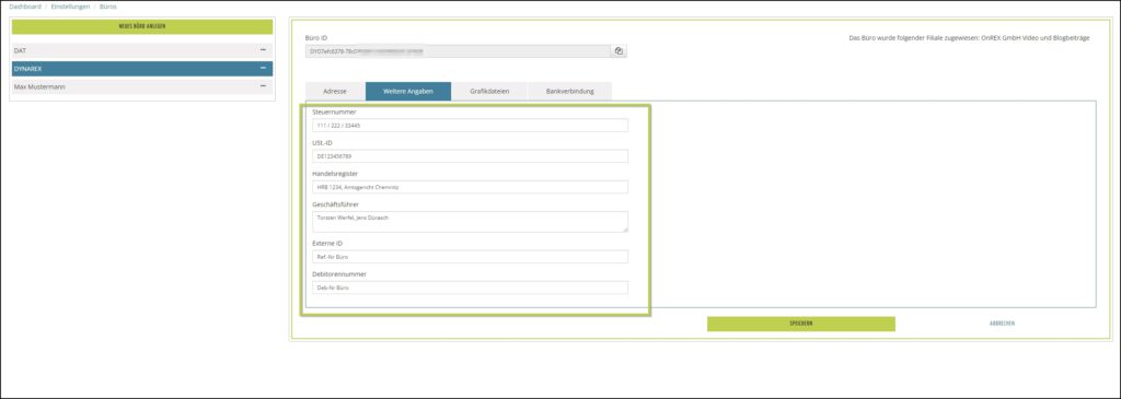 Im rechten Detailbereich erfassen Sie alle Angaben zur Büroadresse.