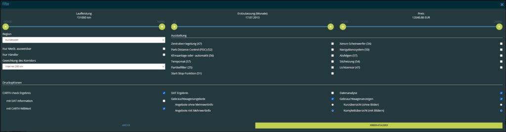 - erfassen Sie die Erstzulassung und die Laufleistung