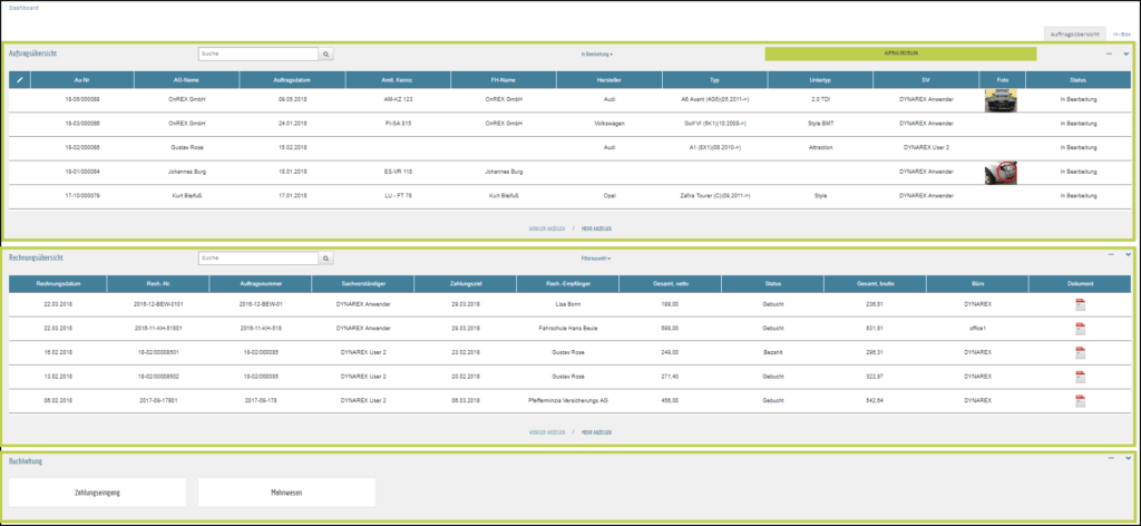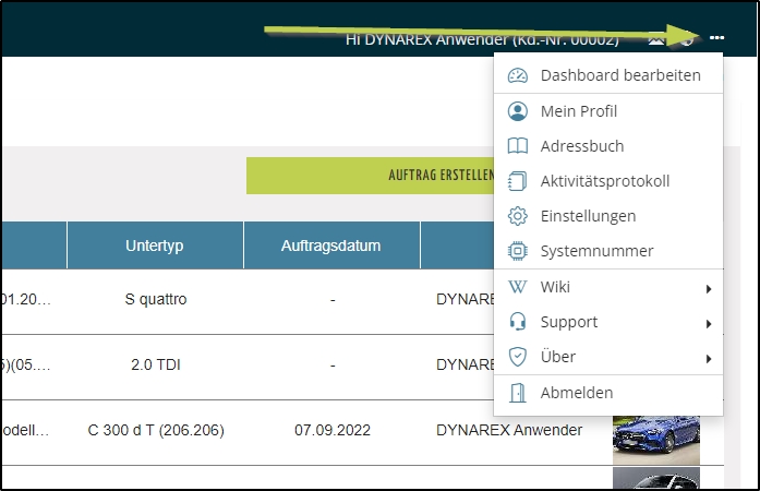 Nach der Neuanmeldung in DYNAREX sollten Sie Ihre Auftragsübersicht und Ihre Startseite nach Ihren Bedürfnissen anpassen.
