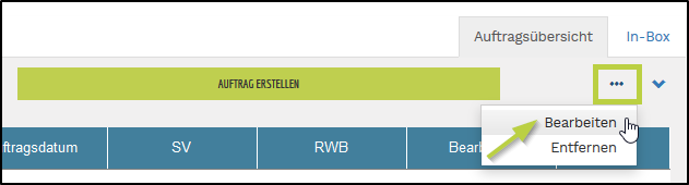 Klicken Sie dazu auf das 3-Punkte Menü des Widgets Auftragsübersicht und wählen Bearbeiten aus: