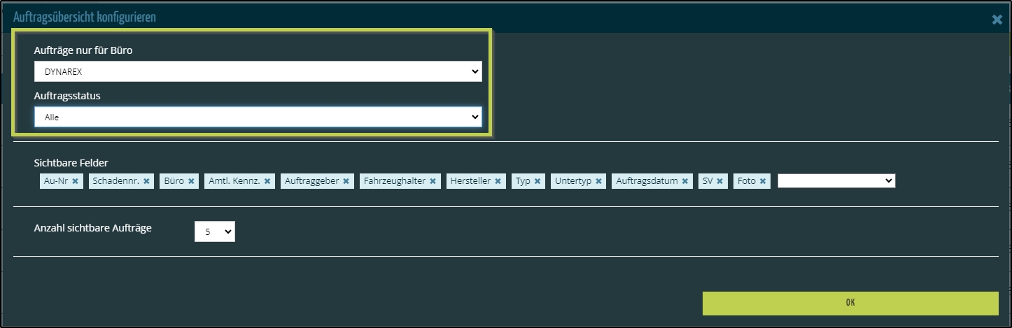 Der Dialog Auftragsübersicht konfigurieren wird geöffnet: