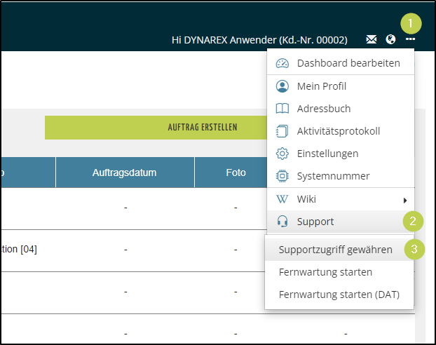 Nach der Neuanmeldung in DYNAREX sollten Sie Ihre Auftragsübersicht und Ihre Startseite nach Ihren Bedürfnissen anpassen.