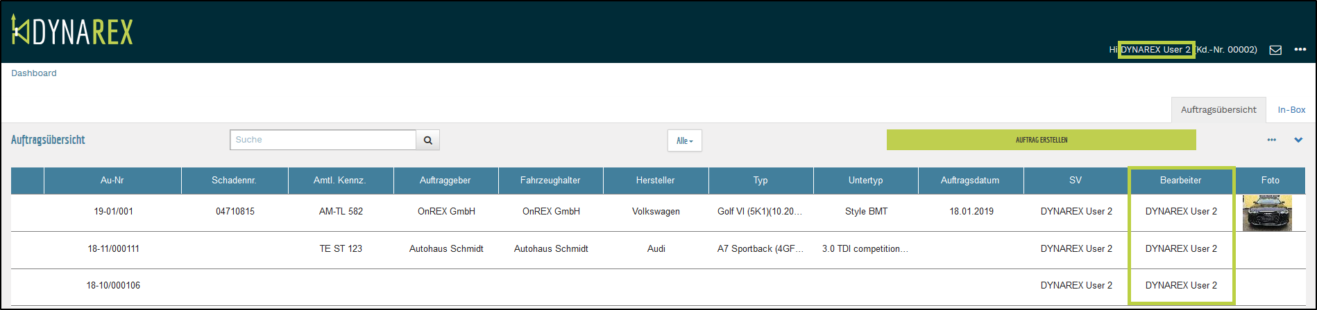 …dann stehen dem Anwender Alle Aufträge, die Von mir erstellten Aufträge oder die in welchen der Anwender auch als Sachverständiger oder Bearbeiter hinterlegt wurde, zur Verfügung: