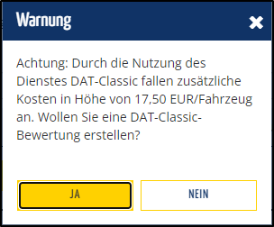 Die Kosten für die Nutzung von DAT-Classic müssen bestätigt werden und werden von DAT in Rechnung gestellt.