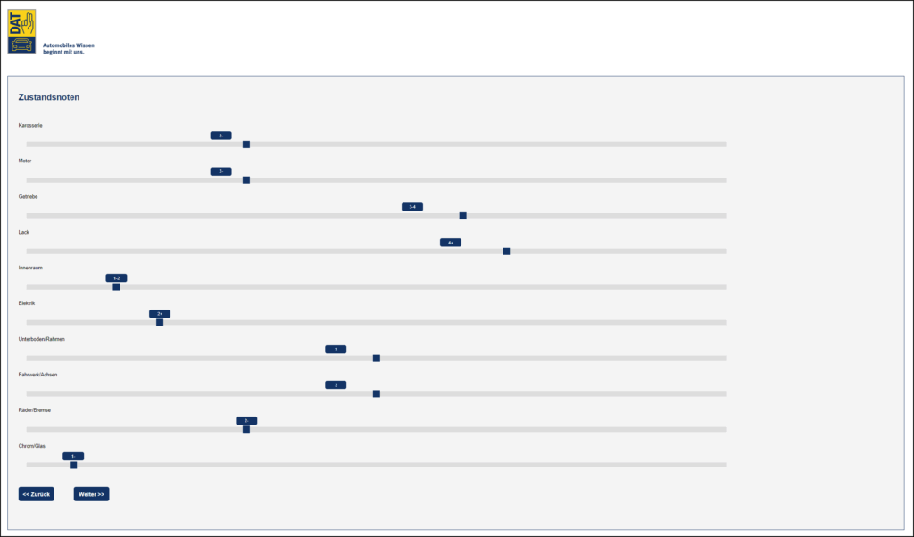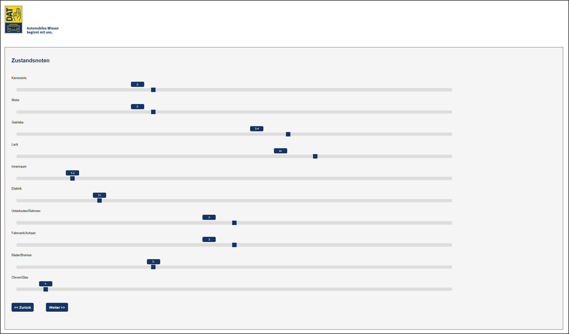 Im nächsten Fenster vergeben Sie einfach per Schieberegler Ihre festzulegenden Zustandsnoten und klicken anschließend wieder auf Weiter.