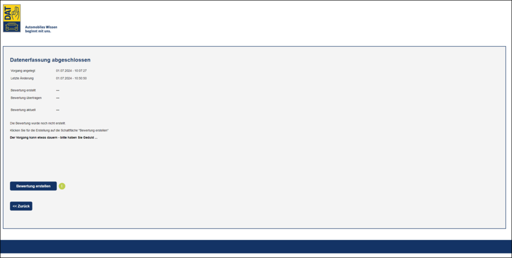 Jetzt ist die Datenerfassung abgeschlossen und Sie können die Bewertung erstellen (1)