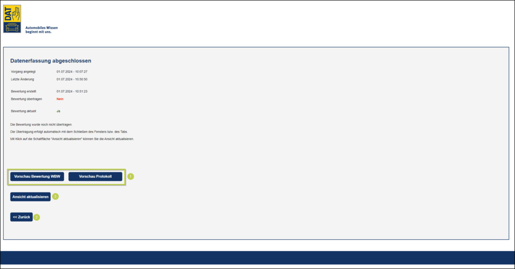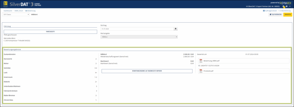 Schließen Sie einfach den separaten Tab der DAT-Classic und die Daten, Ergebnisse und Dokumente werden in SilverDAT3ExpertPartner übernommen.
