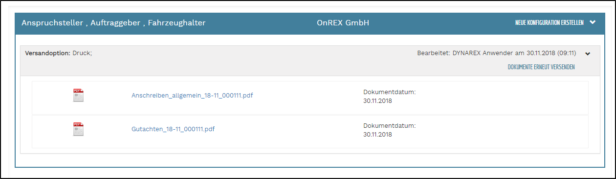 Klicken Sie also neben der gewünschten Beteiligung auf NEUE KONFIGURATION ERZEUGEN und wählen Sie die Dokumenten für diesen Empfänger per Doppelklick aus.