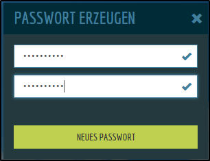 Setzen Sie Ihr Passwort im Dialog und klicken auf NEUES PASSWORT.