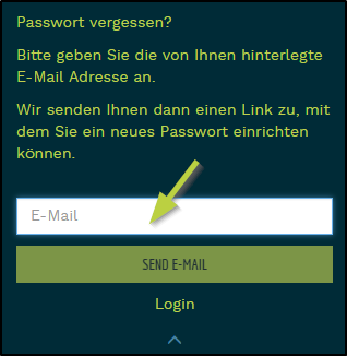 Falls Sie versehentlich Ihr Passwort vergessen haben, nutzen Sie auf der DynaREX-Login Seite den Link Passwort vergessen?