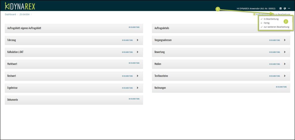 Auch hier haben Sie die Möglichkeit den Bearbeitungsstatus von in Bearbeitung in Fertig zu wählen und ggf. auch wieder zurück.