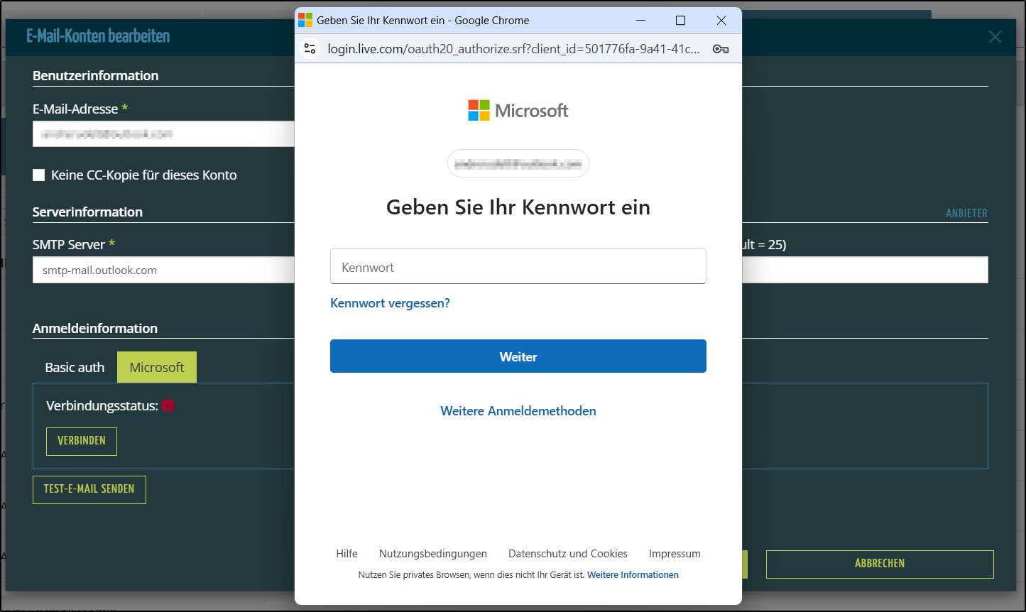 Nach dem Klick öffnet sich ein Dialog, wo Sie sich an Ihrem Microsoft-Konto anmelden müssen.