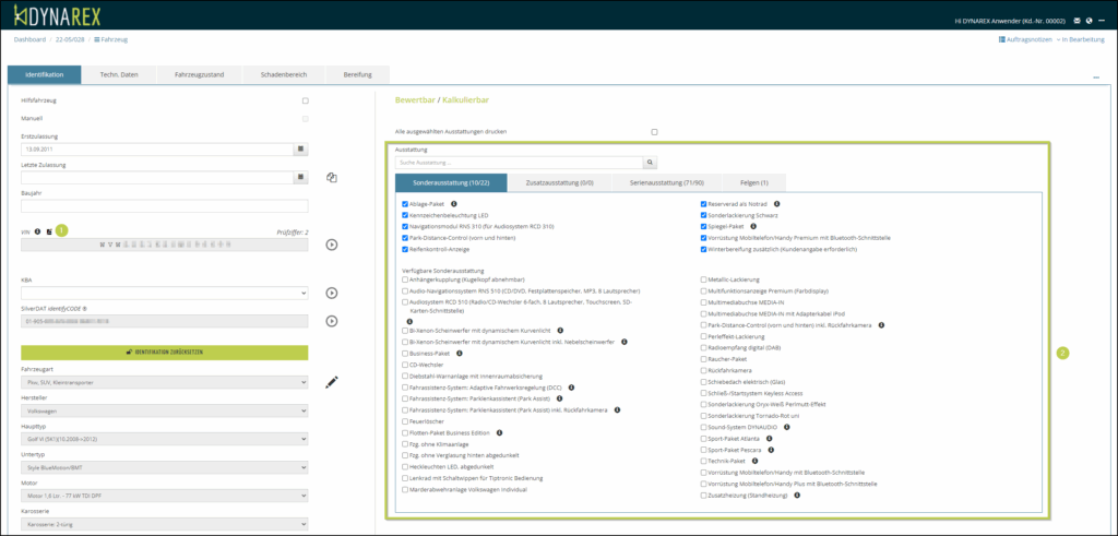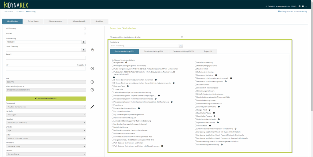 Allerdings ist bei der Fahrzeugauswahl per KBA die Ausstattung nicht vollständig und sollte durch den Sachverständigen komplettiert werden!