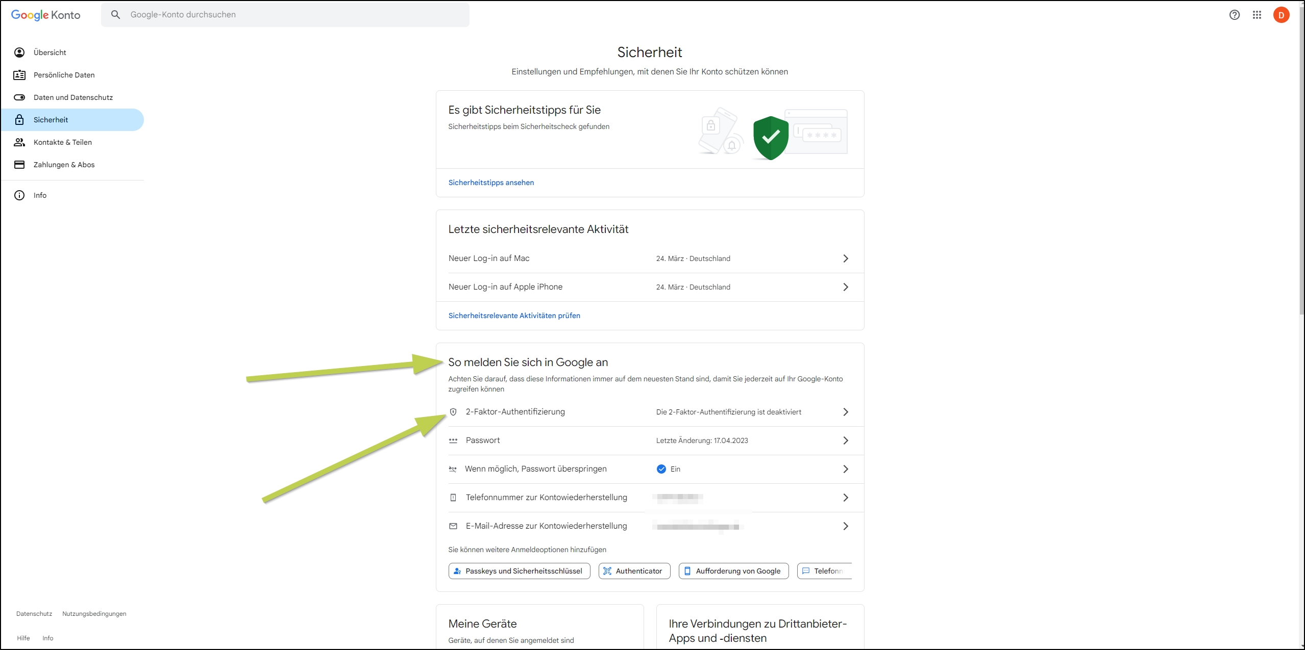 -> „So melden Sie sich bei Google an“ und dann auf „2-Faktor-Authentifizierung“