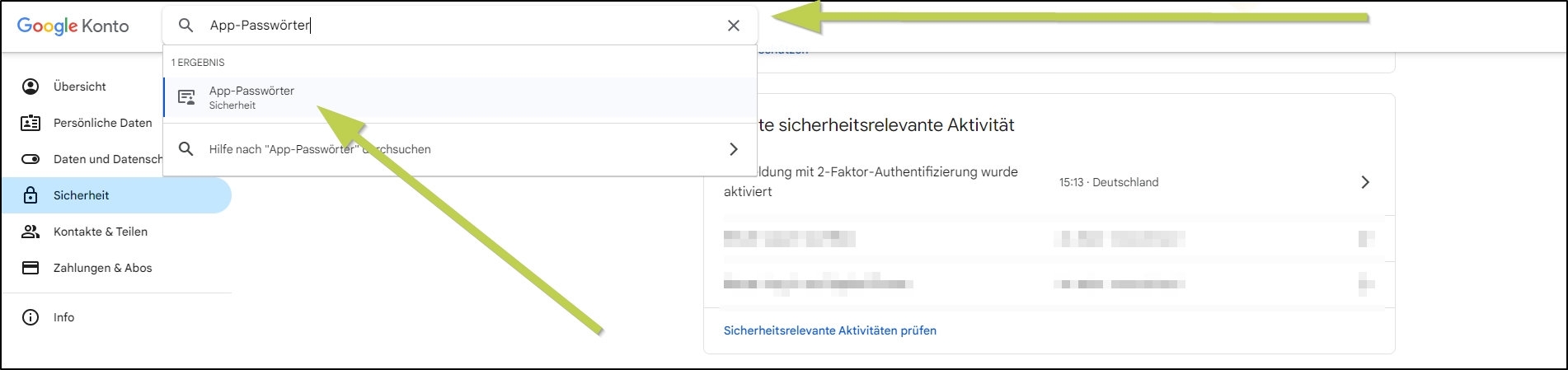 Gehen Sie jetzt zurück und suchen über die Leiste oben nach „App-Passwörter“