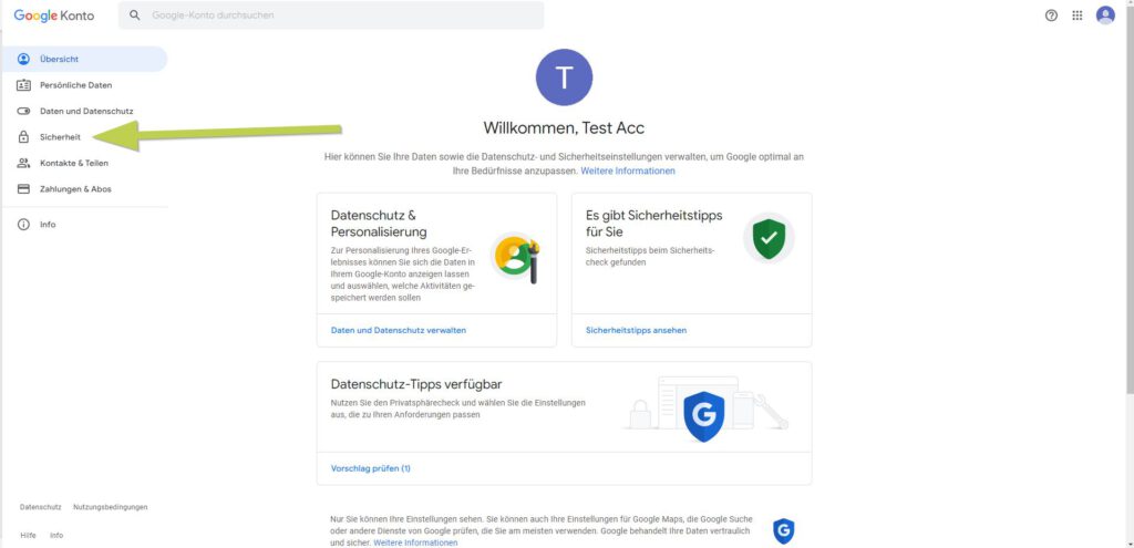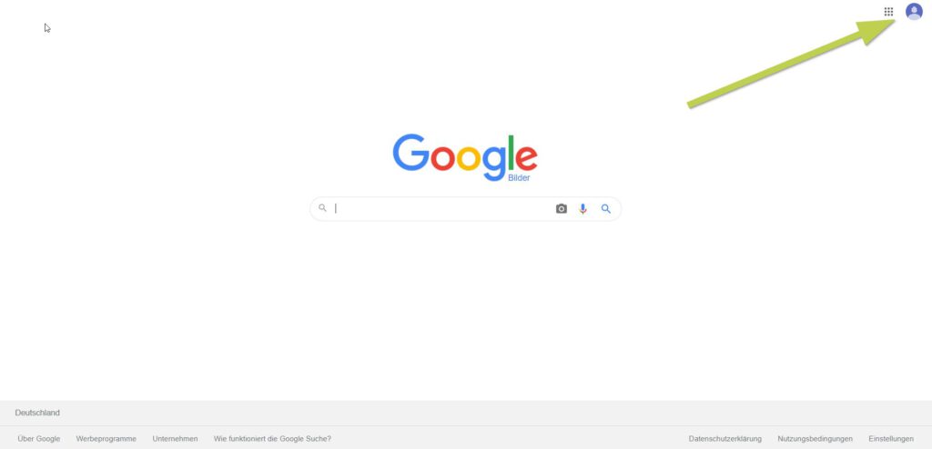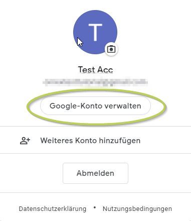 Auf Google gehen, oben rechts auf das Kontosymbol klicken