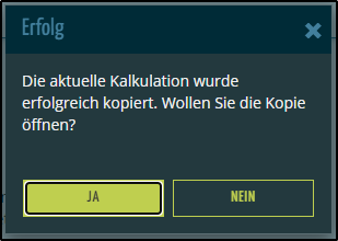 - die gewählte Kalkulation wird kopiert und kann anschließend direkt geöffnet werden.
