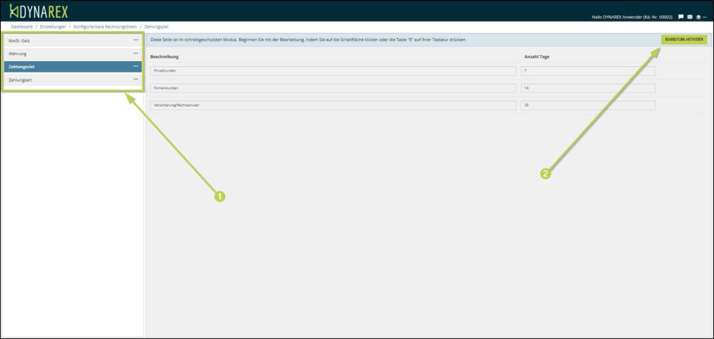 Um Ihre Listen zu bearbeiten oder zu erweitern, klicken Sie wie gewohnt auf den Button BEARBEITUNG AKTIVIEREN (2).