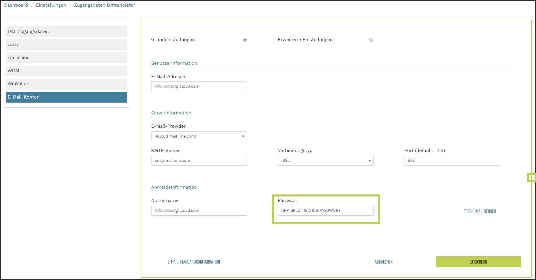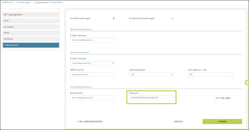 Konfiguration Mail-Versand über iCloud-Mail-Adresse