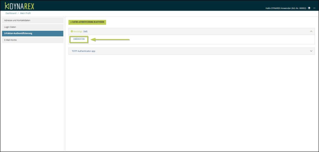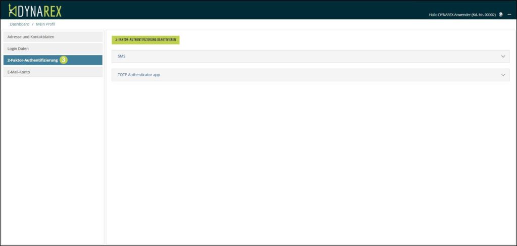 In diesem Bereich können Sie für zusätzliche Sicherheit des Zugriffes eine 2-Faktor-Authentifizierung aktivieren. Wählen Sie dazu eine gewünschte Methode der Authentifizierung.