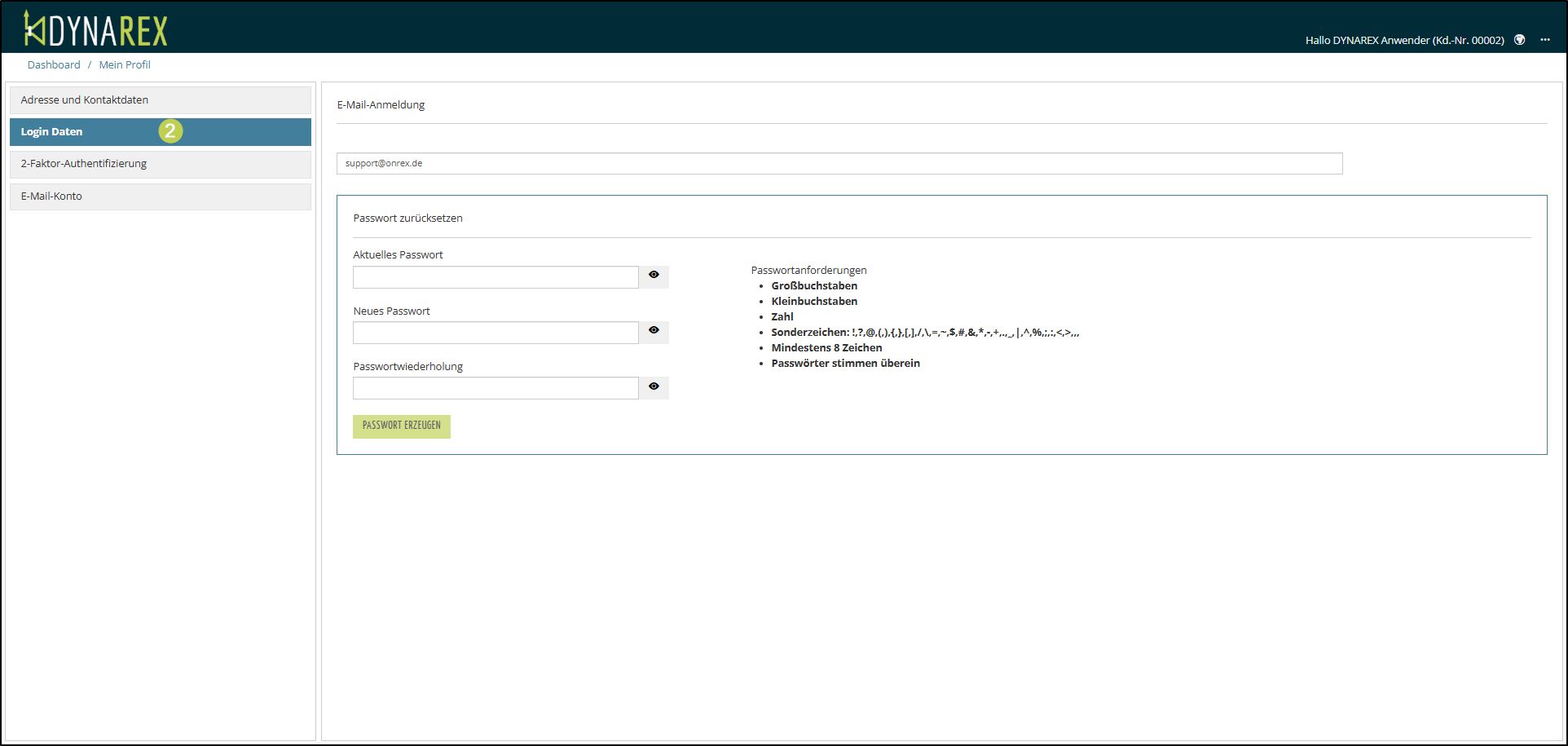 In diesem Beitrag erklären wir Ihnen, wie Sie im DYNAREX Ihren eigenen Anmeldedaten verwalten können.