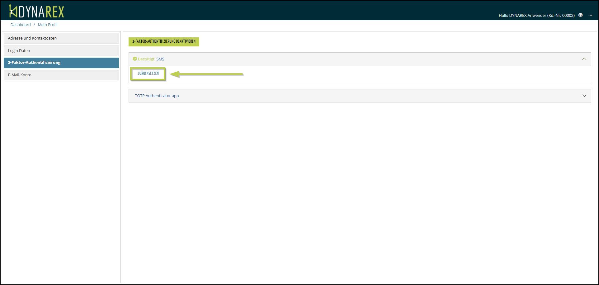 In diesem Bereich können Sie für zusätzliche Sicherheit des Zugriffes eine 2-Faktor-Authentifizierung aktivieren. Wählen Sie dazu eine gewünschte Methode der Authentifizierung.