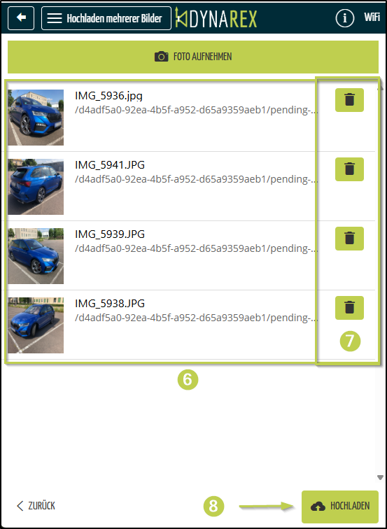 Wiederholen Sie diesen Vorgang beliebig oft – alle aufgenommenen Fotos werden dabei dem jeweiligen Auftrag als Bilder zugewiesen (6).
