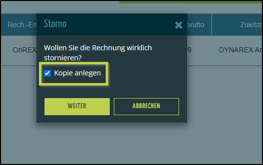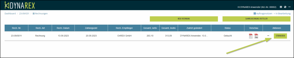 - Rechnung können Sie im DYNAREX auch stornieren.